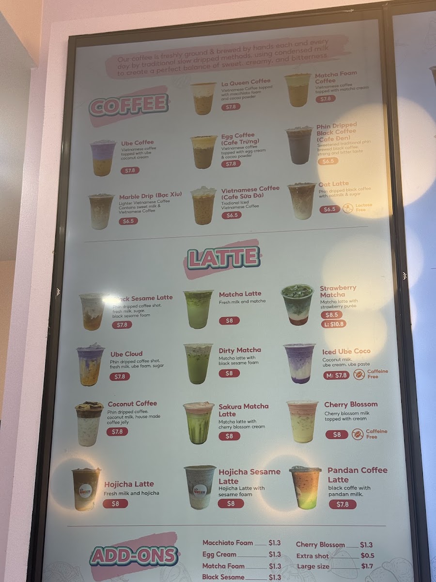 - Coffee Lovers: Indulge in unique options like the Ube Coffee and Matcha Foam Coffee, all priced at A$7.80.